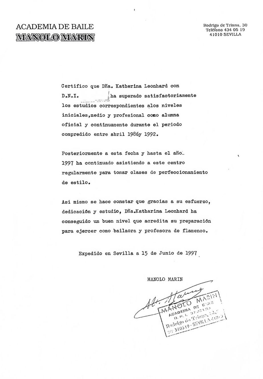 In Sevilla bildete ich mich aus zur Flamencotänzerin an der Academia de Baile Manolo Marin. Ein Vollzeit Unterrichts- und Trainingsprogramm von 6-7 Stunden täglich