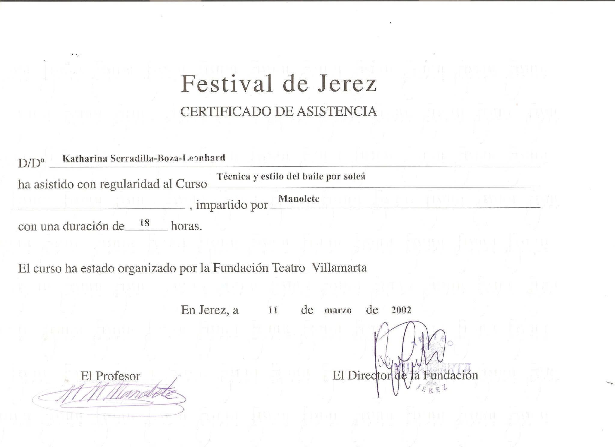 Für die berufliche und persönliche Weiterentwicklung bilde ich mich kontinuierlich weiter. Von nahmhaften Flamencogrössen lasse ich mich kontinuierlich inspirieren
